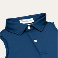 Introducing the "Girls Navy Foxden Classic" sleeveless polo from Foxden Fairways – where elegance meets playfulness on the golf course. This polo is specifically designed for girls, featuring a sleeveless design, a tailored body, and a slightly flared cut at the hips to ensure a comfortable and stylish fit. It can be worn tucked in for a classic look or untucked for a more relaxed style, providing versatility for any golfing occasion.